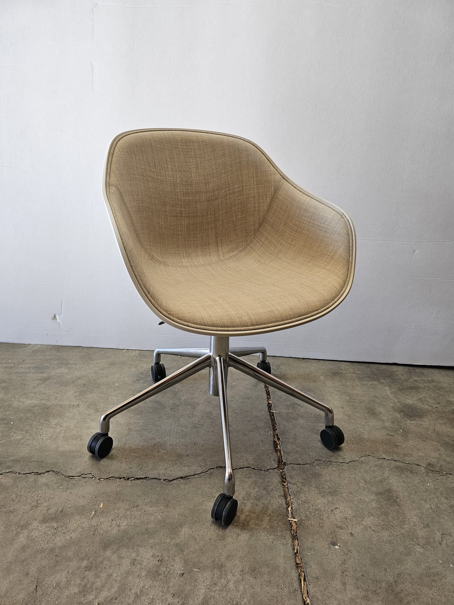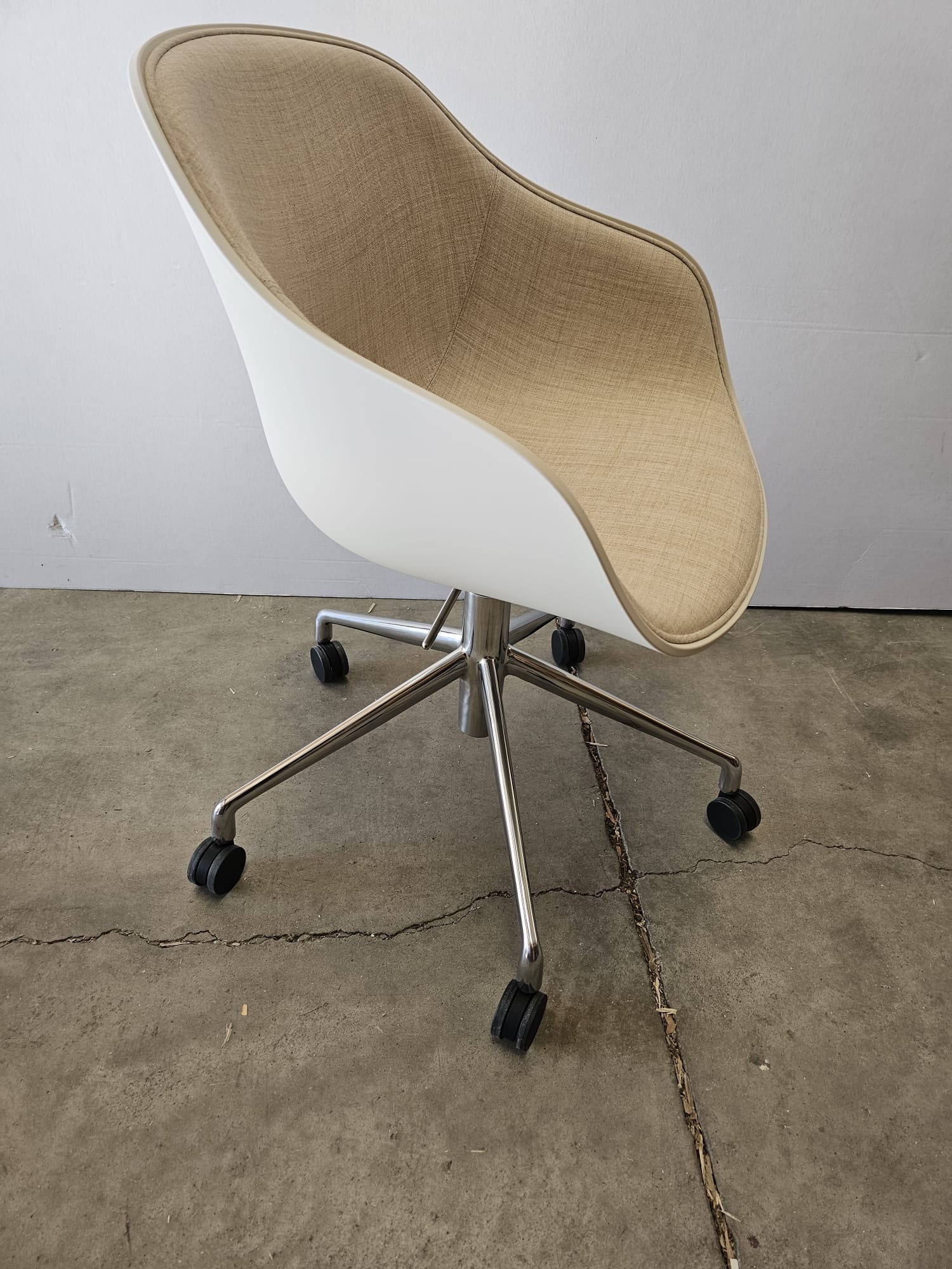 Size: H79 X W69 X L69 Frame: Polished aluminium Shell: Melange cream 2.0 Front upholstery: Remix 3 #223 (beige) Glider: Wheels